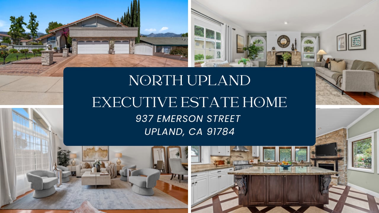 Set north of the 210 freeway, in one of North Upland's most coveted pockets, this refined residence lives up to the setting, elevated, light-filled, & truly move-in ready. The stacked-stone entry, tile roof, & stamped concrete drive signal what lies inside: a home that looks more like a custom build than a tract floor plan. Step through the door into a formal living room anchored by soaring vaulted ceilings, an arched window wall, & a chandelier drawing the eye upward. Natural light pours in fro